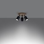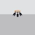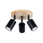 Prosta lampa sufitowa Anderson 3 w czarnym kolorze to również wysoka jakość wykonania. Model składa się z metalowych kloszy w kształcie tuby oraz drewnianej podsufitki w naturalnym odcieniu drewna. Oferowany model doskonale nadaje się do roli lampy do jadalni i kuchni, ale sprawdzi się także w innych wnętrzach – na przykład jako oświetlenie do biura lub przedpokoju. Cała oprawa ma wysokość 17 cm i średnicę 33 cm, a ponadto umożliwia zastosowanie ściemnialnych żarówek LED GU10.