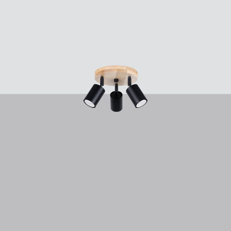 Prosta lampa sufitowa Anderson 3 w czarnym kolorze to również wysoka jakość wykonania. Model składa się z metalowych kloszy w kształcie tuby oraz drewnianej podsufitki w naturalnym odcieniu drewna. Oferowany model doskonale nadaje się do roli lampy do jadalni i kuchni, ale sprawdzi się także w innych wnętrzach – na przykład jako oświetlenie do biura lub przedpokoju. Cała oprawa ma wysokość 17 cm i średnicę 33 cm, a ponadto umożliwia zastosowanie ściemnialnych żarówek LED GU10.