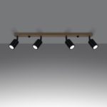 Oferowana lampa sufitowa z reflektorami emituje punktowe światło, ma wysokość 17,5 cm oraz szerokość 96 cm. Oprawa przystosowana jest do żarówek LED GU10 standardowych i ściemniających. Prosta lampa sufitowa Andersn 4 w klasycznym kolorze wykonana została z wysokiej jakości materiałów – metalu i drewna.