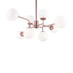 Oferowana lampa mosiężna wyjątkowo dobrze współgra z aranżacjami w stylu nowoczesny glamour. Prosta lampa sufitowa Erich 8 w mosiężnym kolorze wyróżnia się stylowym stelażem z wygiętymi ramionami. Każdy z ośmiu kloszy ma kształt kuli i wykonany jest mlecznego szkła.