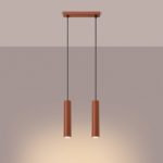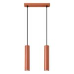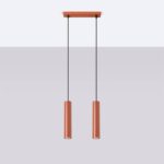 Prosta lampa wisząca Achilles 2 składa się jedynie z listwy oraz dwóch kloszy w formie wąskich tub. Ta wyjątkowo minimalistyczna forma zestawiona została z intensywną, czerwoną kolorystyką, która dodaje wnętrzu energii i wizualnie ociepla aranżację. Całość tworzy harmonijną kompozycję, idealnie wpisującą się w styl nowoczesny.