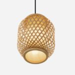 Rattanowa lampa wisząca Pomalca na czarnym stelażu