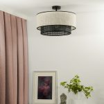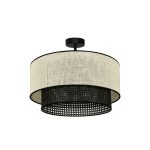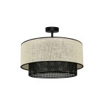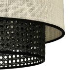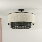 Sufitowy plafon Rattan Yute wyposażony jest w dwa abażury – zewnętrzny z juty w białym kolorze oraz wewnętrzny z czarnego rattanu. Całość uzupełnia stelaż wykonany z metalu, również w czarnym kolorze. Rattanowy plafon sufitowy na stopce Rattan Yute łączy w sobie styl boho i nowoczesny, doskonale nadając się do wszystkich wnętrz wyposażonych w elementy wystroju wykonane z naturalnych materiałów. Do oferowanej lampy sufitowej dobrać możesz na przykład lniane zasłony, wełniany dywan, czy drewniane meble, co pozwoli Ci zachować estetyczną spójność całej aranżacji.