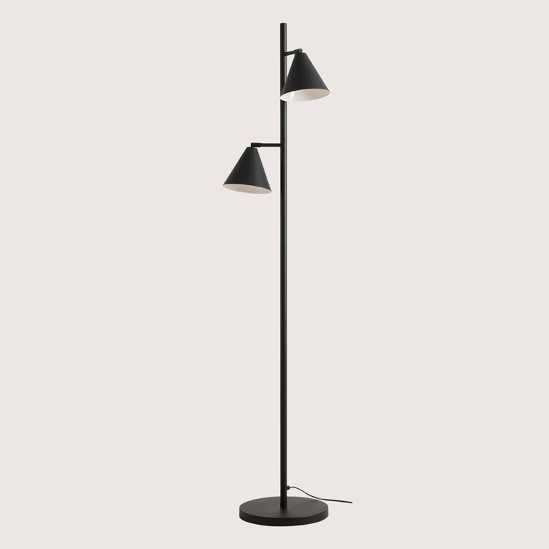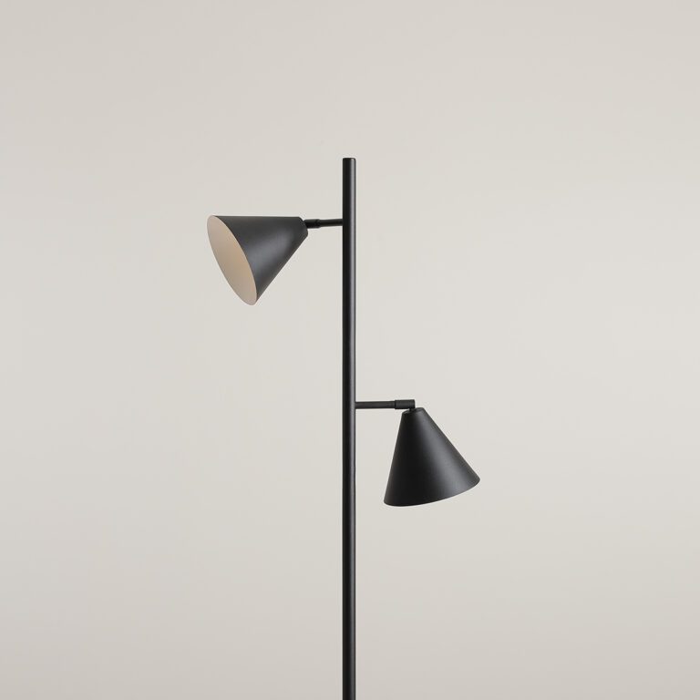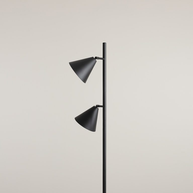 Charakterystyczną cechą lampy w czarnym kolorze Form 2 jest możliwość samodzielnego ustawiania kloszy – w każdej chwili możesz bez przeszkód zmienić kąt padania światła. Rozwiązanie to sprawia, że regulowana lampa podłogowa w czarnym kolorze Form 2 doskonale sprawdzi się w roli lampy do czytania, a nawet do pracy!