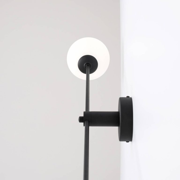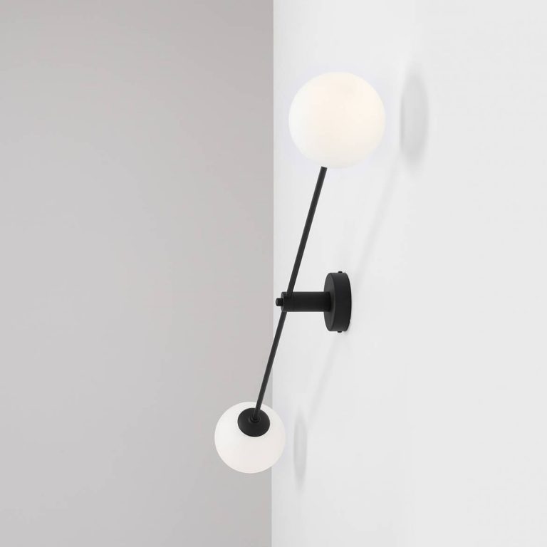 Oferowany przez nasz sklep online kinkiet Tokio charakteryzuje się, przede wszystkim, nietypowym designem. Składa się na niego czarny metalowy stelaż o maksymalnej długości 110 cm oraz dwóch identycznych szklanych kloszy o średnicy 14 cm. Całość prezentuje się niezwykle oryginale, przez co przykuwa uwagę, a jednocześnie spełnia swoją podstawową funkcję użytkową.