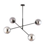Jeśli chcesz dobrze poznać ten oferowany model, warto bliżej poznać jego budowę. Jest to oświetlenie wyposażone w solidny stelaż z ruchomymi ramionami oraz podsufitką. Cała ta część sufitowej lampy Frix 4 wykonana jest z wysokiej jakości, odpornej stali lakierowanej na czarno. Na obu krańcach każdego z ramion znajdują się zjawiskowo piękne klosze z popielatego szkła. Ich połyskujące wykończenie prezentuje się nadzwyczaj elegancko i sprawia, że wnętrze wypełnia się dodatkowym blaskiem.