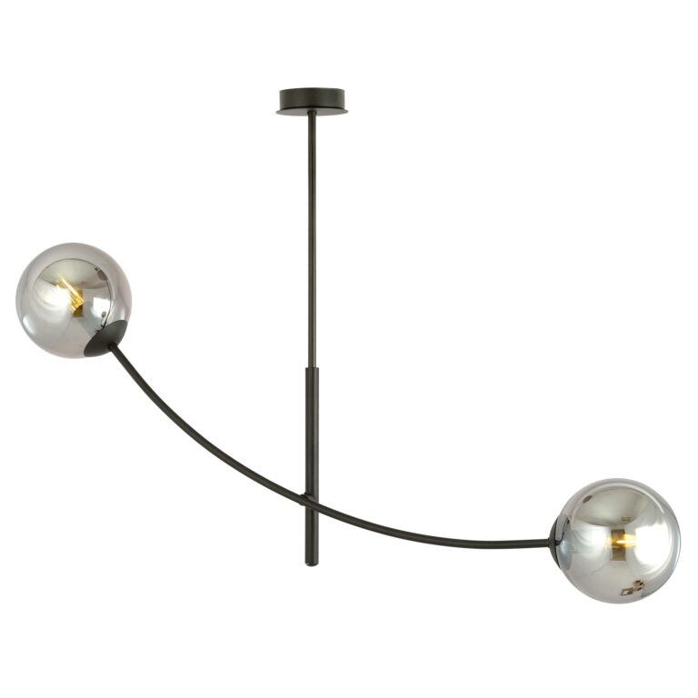 To właśnie kuliste klosze są najbardziej oryginalnymi elementami całej lampy sufitowej do salonu Orbis 2. Wykonane zostały z bardzo modnego obecnie kolorowego szkła – w tym przypadku o popielatym odcieniu. Dzięki tym oryginalnym kulom, nie tylko samo oświetlenie, ale również i całe wnętrze nabiera designerskiego charakteru, który z pewnością przyciągnie uwagę Twoich gości. Oferowany model wyposażony jest również w stelaż w kolorze czarnym, który sprawia, że ta nowoczesna lampa świetnie zestawia się z bardzo różnymi odcieniami ścian czy dodatków.