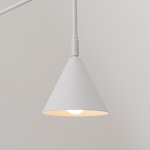 Biała lampa wisząca na listwie Enkel 3 L nad wyspę kuchenną