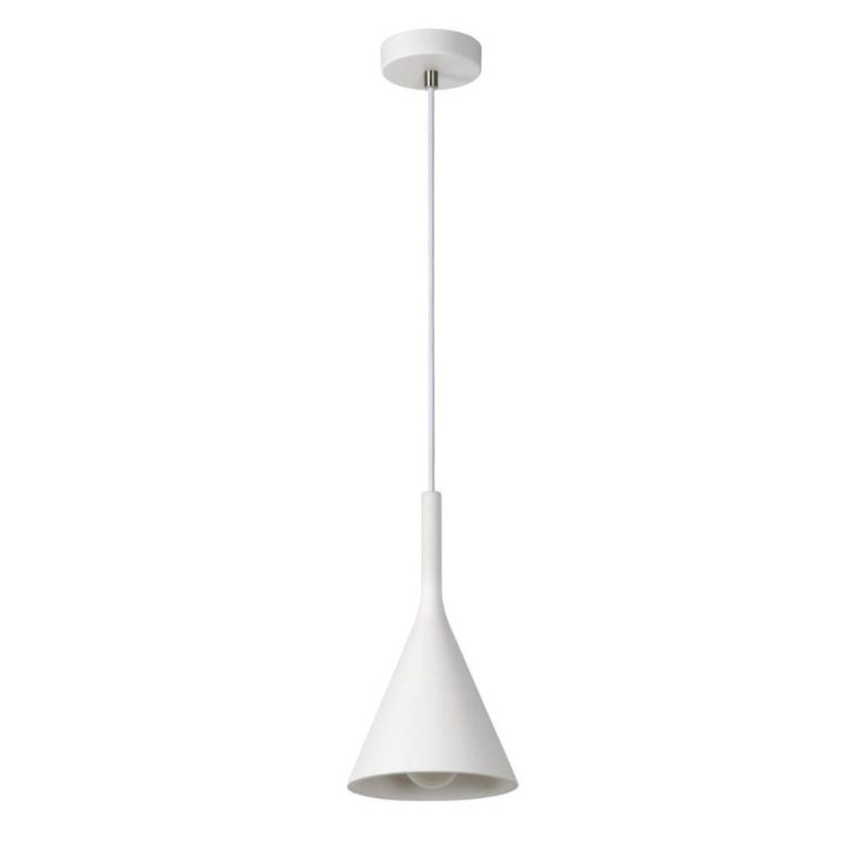 Lampa wisząca-zwis Gipsy Conical wyróżnia się już samym materiałem, z którego została wykonana. To dobrze nam znany gips, do niedawna kojarzony raczej z budownictwem lub rzeźbami, niż z oświetleniem. Jednak od jakiegoś czasu również i w tym segmencie wykorzystuje się ten materiał. Oferowana lampa w nowoczesnym stylu wyposażona jest w jeden klosz w kształcie stożka (bryła ta przypomina odwrócony lejek), przewód zasilający oraz okrągłą podsufitkę. W najszerszym miejscu abażur ma 16,5 cm, jego wysokość to 29 cm. Średnica podsufitki wynosi 10 cm.
