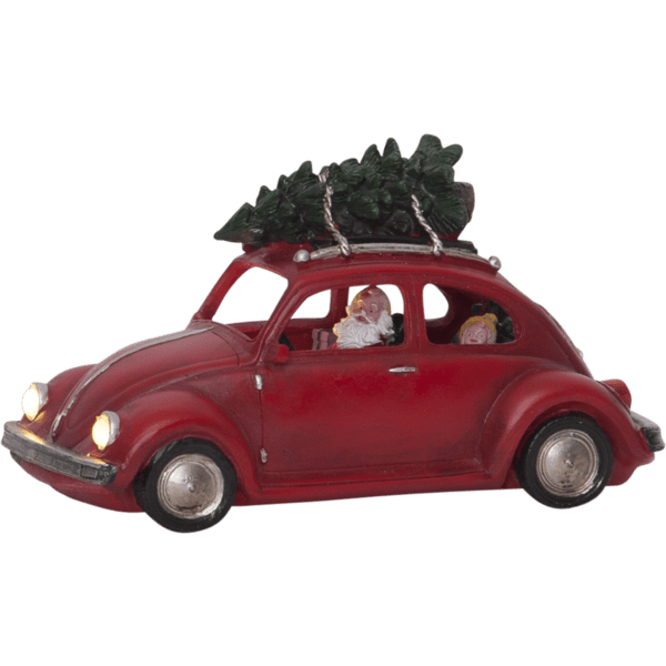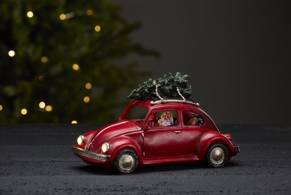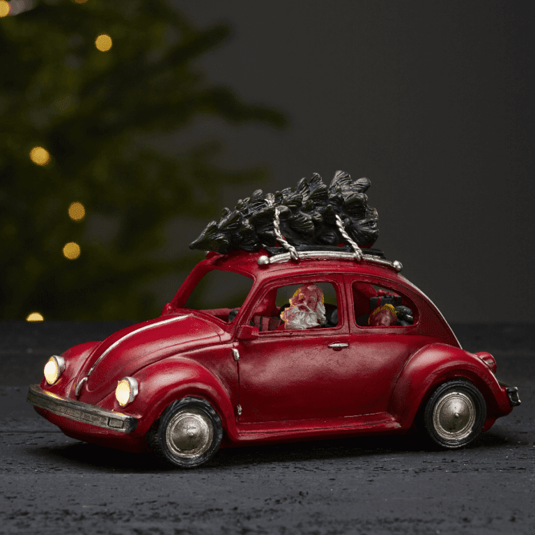 Scenka dekoracyjna ze św. Mikołajem w czerwonym samochodzie