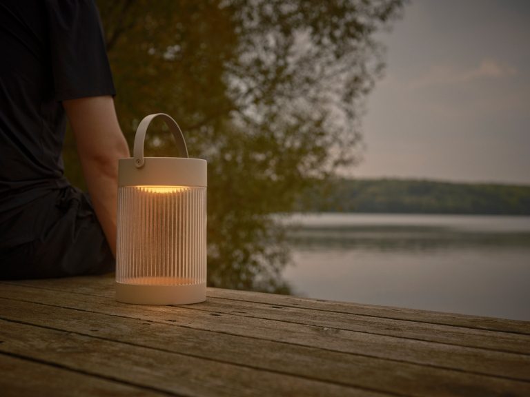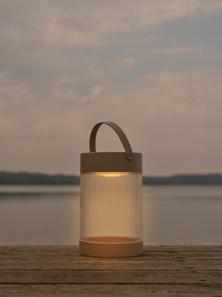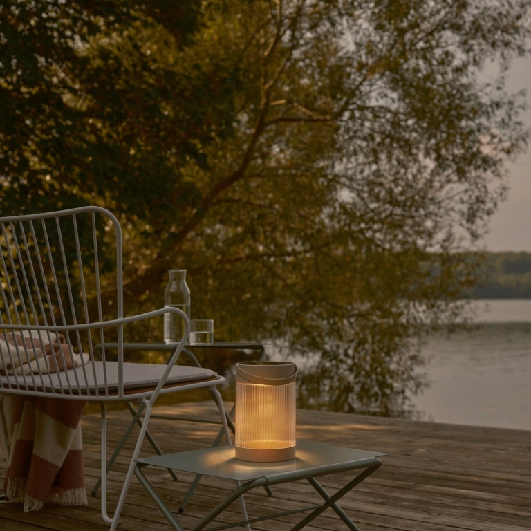 631,00 złZewnętrzna lampa stołowa Justine z karbowanym kloszem