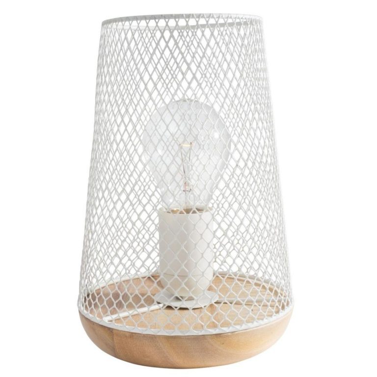 Skandynawska lampka stołowa Soacha z drewnianym elementem