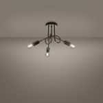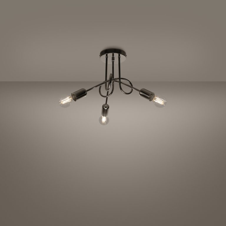 To lampa sufitowa potrójna, która pozbawiona jest klasycznych kloszy. Model wyposażony jest jedynie w oprawki na żarówki, które zostają przez to wyeksponowane. Uzupełnieniem dla nich jest niezwykle designerski stelaż z powyginanymi ramionami. Srebrna lampa sufitowa Crazy 3 do salonu to także metaliczne wykończenie oraz optymalna wielkość.