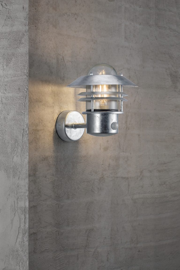 Srebrny kinkiet elewacyjny Blokhus z czujnikiem ruchu
