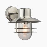 Srebrny kinkiet elewacyjny Jenson Wall został wykonany z wysokiej jakości stali i szkła, co zapewnia m trwałość i odporność na działanie warunków atmosferycznych. Polecana lampa elewacyjna składa się z dekoracyjnego klosza oraz minimalistycznego stelaża – całość nawiązuje nawiązuje do stylu loftowego, ale znakomicie wkomponowuje się również w aranżacje nowoczesne.