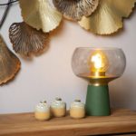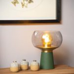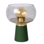 Lampa na stolik nocny Farris składa się z metalowej podstawy w odcieniu butelkowej zieleni i złota oraz ze szklanego klosza w kolorze popielatym. Ta gra barw idealnie pasuje do loftowych i industrialnych aranżacji – nie są to jednak jedyne style, z którymi oferowane oświetlenie będzie współgrać. Szary, ale transparentny klosz dobrze rozprasza światło, a jednocześnie zmienia nieco jego barwę, dzięki czemu Twoja sypialnia lub salon nabiorą nastrojowego klimatu.