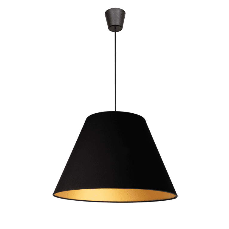 Jeśli szukamy tradycyjnego modelu oświetlenia, który mimo wszystko ma w sobie coś, co przyciąga wzrok, powinniśmy wybrać stożkową lampę wiszącą Anna. Co jest w niej wyjątkowego, skoro na pierwszy rzut oka wygląda, jak klasyczna lampa sufitowa? To z pewnością złote wykończenie wnętrza jej abażuru, które nadaje mu szyku i elegancji.