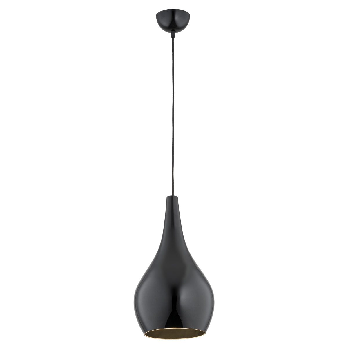 Na pojedynczą lampę wiszącą w czarnym kolorze Santana składa się stalowa podsufitka, regulowany przewód oraz szklany klosz w designerskim kształcie łezki. Dzięki uniwersalnej kolorystyce całości możesz stworzyć aranżację nie ograniczając się barwą ścian, mebli, czy dekoracji. Stylowa lampa wisząca w czarnym kolorze Santana w szczególności pasuje do minimalistycznych i nowoczesnych wnętrz, możesz jednak wykorzystać ją jako nietypowy element wystroju w innym klimacie.
