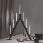 Model przystosowany jest do siedmiu żarówek E10, które możesz wymieniać – to proste rozwiązanie sprawia, że świecznik LED posłuży Ci nie tylko przez jedne Święta! Świecznik świąteczny w loftowym stylu to również uniwersalny czarny kolor i kabel zasilający z przełącznikiem.