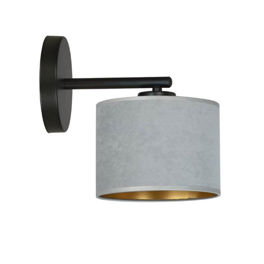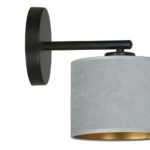 Stelaż w tym modelu wykonany został z metalu malowanego proszkowo na czarno, przez co prezentuje się on prosto i elegancko. Głównym elementem dekoracyjnym jest tutaj jednak klosz o cylindrycznym kształcie. Abażur wykonany jest z tkaniny, którą podklejono na tworzywie PCV, jego wysokość wynosi 16 cm, a średnica 18 cm. Cały kinkiet do sypialni Wendy ma wysokość 24 cm.