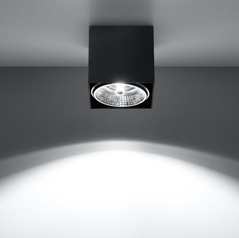 Nowoczesne lampy sufitowe to między innymi oświetlenie spot, które jest montowane bezpośrednio na suficie. Charakteryzuje się tym, że wytwarza równomierny, stożkowy snop światła, który dobrze doświetla konkretną przestrzeń czy elementy wyposażenia. Sześcienny spot sufitowy Cube to typowa lampa punktowa, która umożliwia wyeksponowanie wybranych miejsc oraz przedmiotów i dekoracji. Spot jest przystosowany do żarówek typu GU10 czyli reflektorów halogenowych i żarówek LED, które zamiast tradycyjnego gwintu montuje się za pomocą dwóch wypustek.