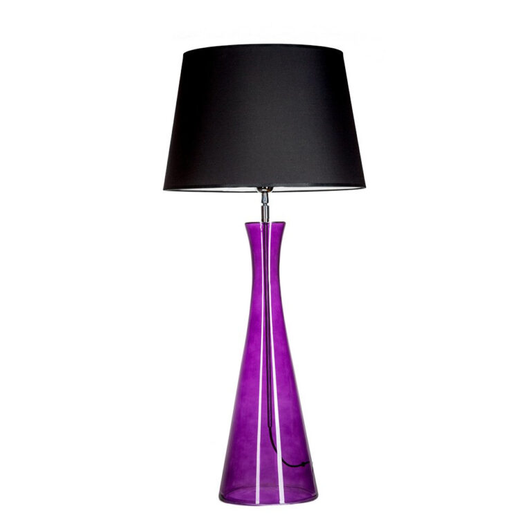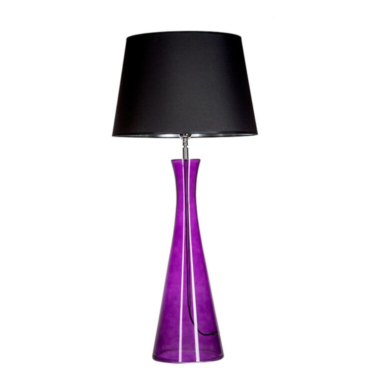 Dostępna u nas lampa stołowa wyposażona jest w czarny, stożkowy abażur w dwóch wersjach kolorystycznym – z białym lub srebrnym wnętrzem. Posiada również szklaną podstawę w przyciągającym uwagę kolorze fioletowym. Połączenie czarnego klosza z nietypową podstawą powoduje, że nasza szklana lampa stołowa łączy w sobie nowoczesność, klasykę i odrobinę ekstrawagancji.