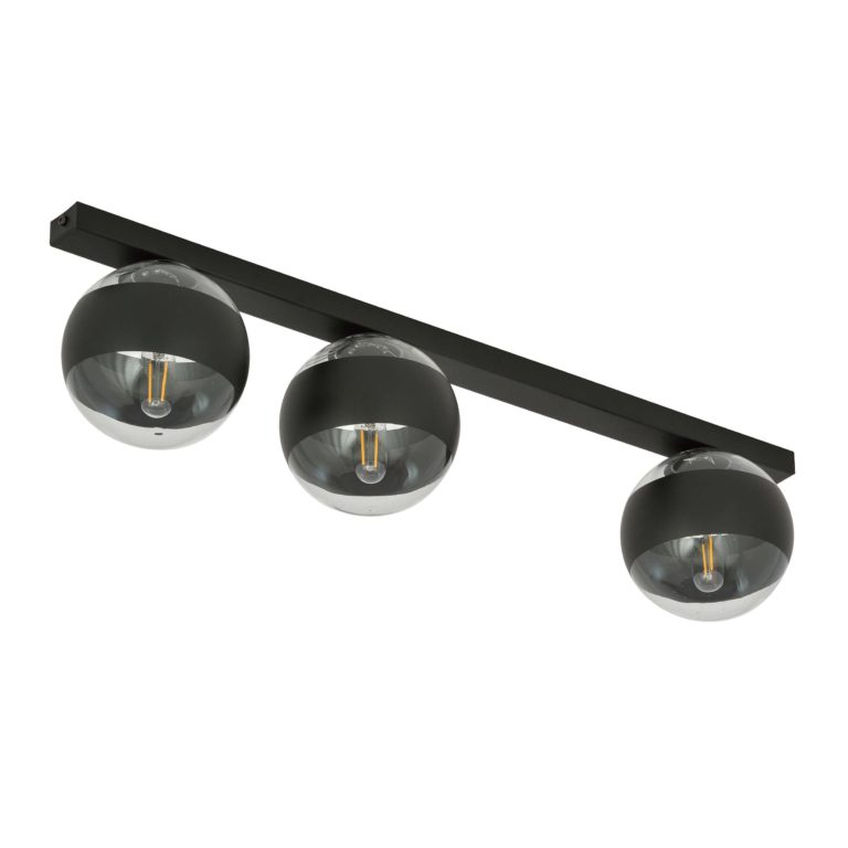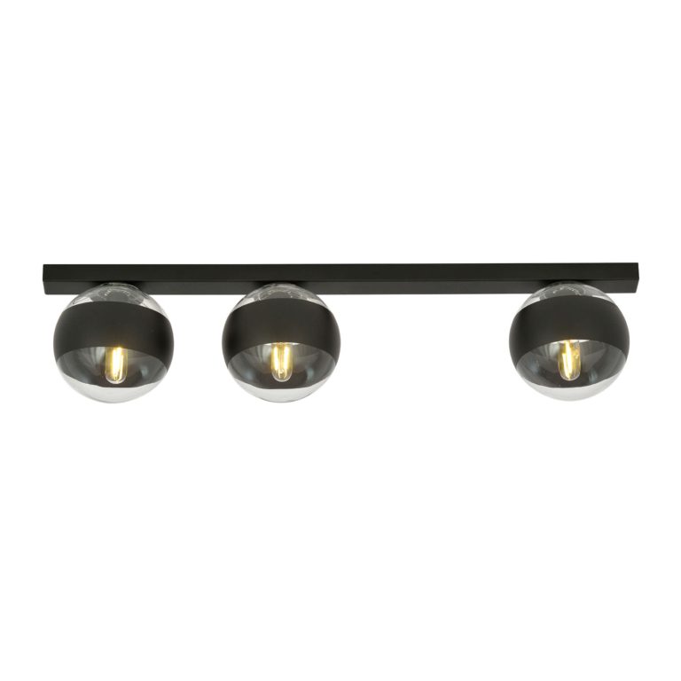 Typowo dekoracyjnym elementem całości, są czarne paski biegnące dookoła szklanych kloszy. Doskonale współgrają one z listwą sufitową o tym samym kolorze. Opisywany model charakteryzuje się dynamicznym, ale bardzo spójnym designem, który idealnie pasuje do wielu współczesnych aranżacji. Czarna lampa z transparentnymi kloszami Pen 3 świetnie prezentuje się na tle nowoczesnych, stonowanych wnętrz, ale również nieco bardziej ekstrawaganckich pomysłów. Możesz ją z powodzeniem zestawiać, na przykład, ze stylem industrialnym, w którym często wykorzystuje się oświetlenie z przezroczystym szkłem.