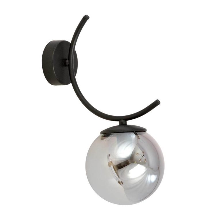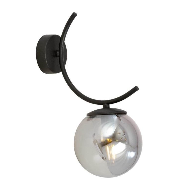 Lampa ścienna w designerskim stylu Dali to dekoracja i oświetlenie w jednym. Na całość składa się przyściennik, nietypowo wygięty wysięgnik (wąsy Dalego) oraz klosz w kształcie idealne kuli. Całość prezentuje się efektownie, co jeszcze bardziej podkreśla połyskujące wykończenie klosza, wykonanego ze szkła w popielatym odcieniu. Tłem dla niego jest stelaż z metalu lakierowany na kolor czarny. Jest to propozycja oświetlenia dekoracyjnego, która emanuje wyjątkowością, pozwalającą wykreować oryginalną aranżację całego wnętrza!