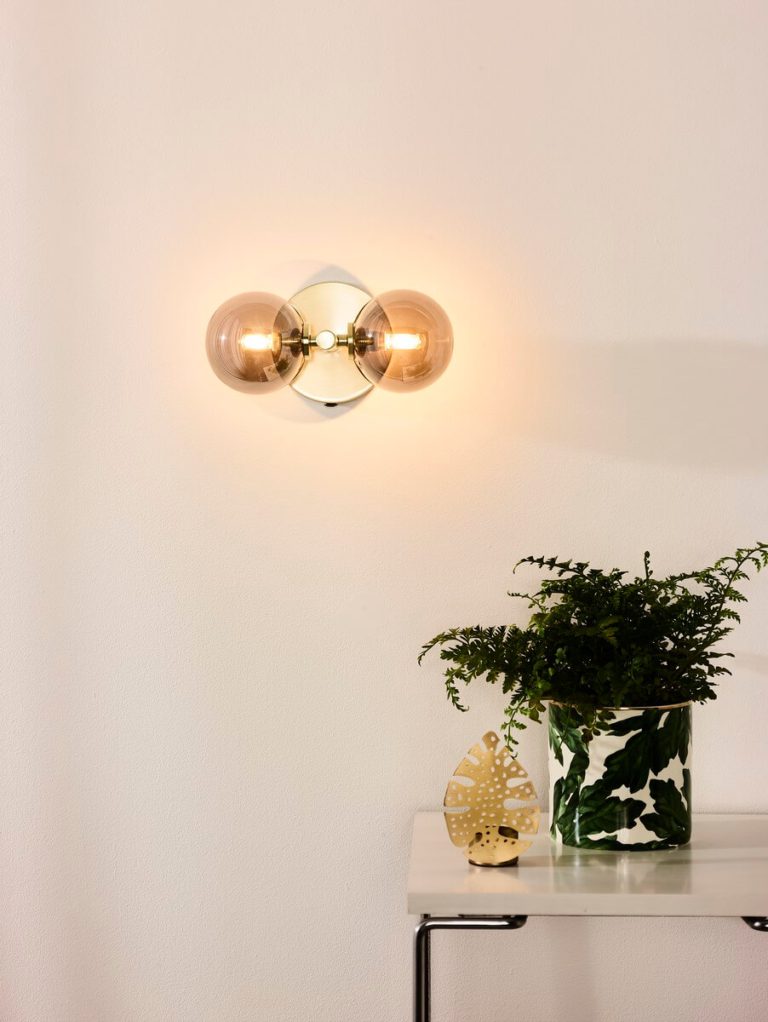 Szklany kinkiet ścienny z dwoma kloszami Tycho jest jednak nie tylko dekoracją, ale także praktycznym źródłem światła. Opisywany model posiada możliwość kontrolowania poziomu jasności z zastosowaniem ściemnialnej żarówki. W ten prosty sposób zyskasz na nastrojowym oświetleniu, które doskonale sprawdzi się, jako element wyposażenia sypialni, salonu lub innej, wybranej przez Ciebie, przestrzeni.