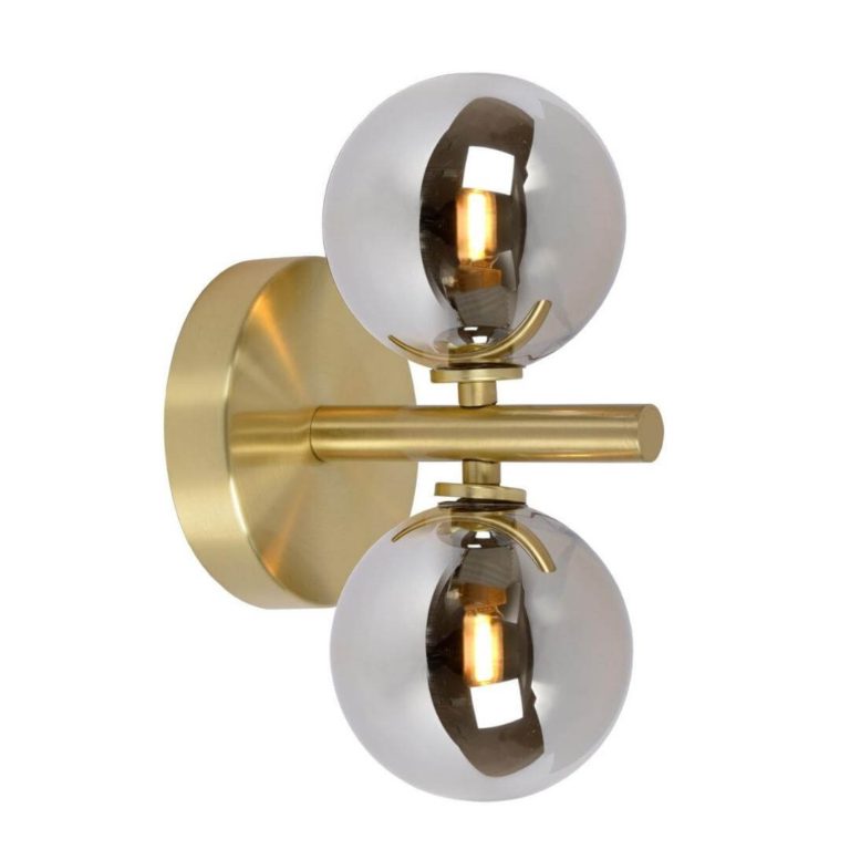 Klosze kinkietu ściennego w stylu glamour Tycho wykonane zostały z dymionego szkła, które prezentuje się wręcz zjawiskowo! Popielata kolorystyka szklanych kul doskonale zestawia się ze złotym stelażem. Oba kolory nie tylko świetnie do siebie pasują, ale również wprowadzają do wnętrza elegancję, a nawet odrobinę wytworności. Jeśli chcesz podkreślić charakter oferowanego modelu, koniecznie zadbaj również o pasujące do niego dodatki – mogą to być, chociażby złote lub popielate poduszki z weluru.