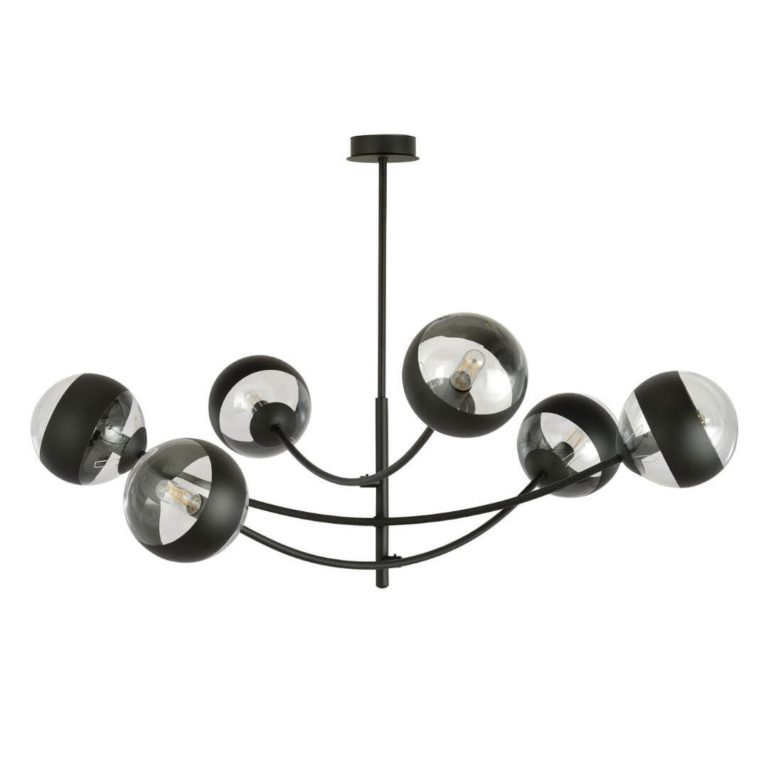 To oferowane przez nas oświetlenie sufitowe wyprodukowane zostało na krajowym rynku, dlatego wyróżnia je nie tylko modny wygląd, ale również wysoka jakość. Składa się na nią dopracowane wykończenie, zastosowanie wyłącznie sprawdzonych materiałów oraz zachowanie norm dotyczących bezpiecznego użytkowania. Nowoczesny żyrandol Orbis 6 wyposażony jest stelaż i ramiona ze stali oraz sześciu szklanych kloszy – w każdym z nich znajduje się jedno źródło światła.