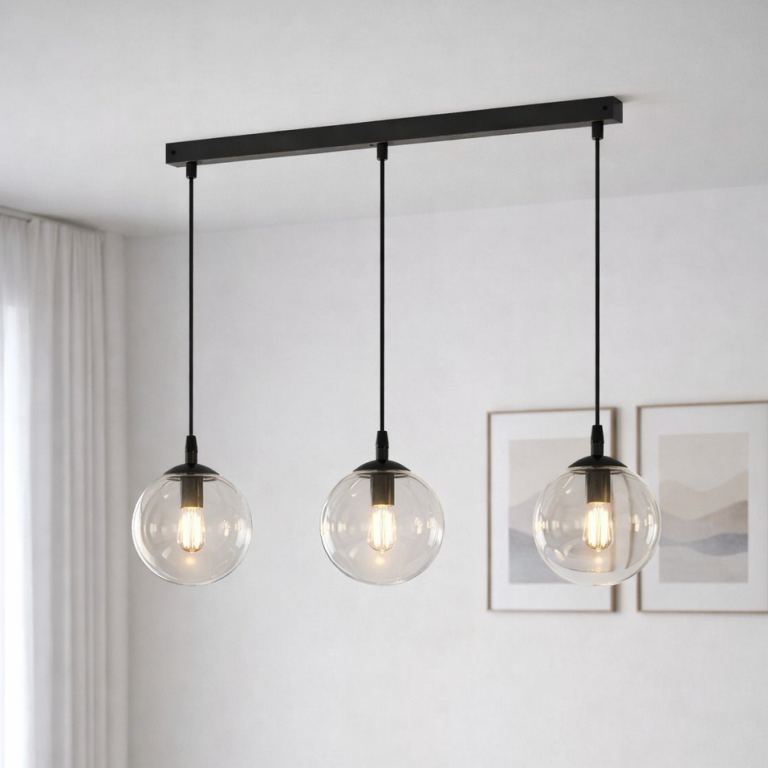 Surowy beton, nieotynkowane ściany czy widoczne elementy różnych instalacji – w miejscu, w który pojawią się wspomniane akcenty budowlane, lampa wisząca Blair 3 sprawdzi się idealnie. Możliwość regulowania wysokości kloszy to fenomenalne rozwiązanie, które pomoże Ci stworzyć ich oryginalny układ. Sam możesz zdecydować jak rozmieścić szklane kule, aby najbardziej pasowały do Twojego pokoju. Nie zapomnij o stylowych dodatkach, aby podkreślić tę inspirującą aranżację wnętrzarską, w której lampa sufitowa Blair 3 będzie królować.