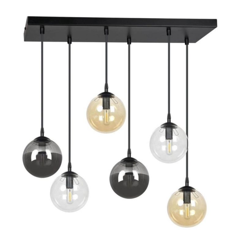 To wyjątkowo solidne źródło światła wyprodukowane zostało w Polsce ze sprawdzonych materiałów – w tym metalu i szkła. Najbardziej charakterystycznym elementem całości są zdecydowanie różnokolorowe, połyskujące klosze. W sumie jest ich aż sześć, po dwa w odcieniu: miodowym, grafitowym oraz transparentnym. Każdy klosz ma identyczną wysokość 14 cm. Tego rodzaju szklana lampa przepięknie odbija światło oraz delikatnie zmienia jego barwę, dlatego model Blair 6 tak dobrze sprawdza się w roli dekoracyjnego oświetlenia.