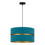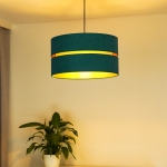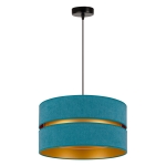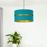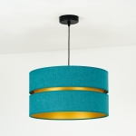 Tak jak i lampa, tak i jej kolory są zdecydowanie nieszablonowe. Ogólnie patrząc, model ten jest szykowny i elegancki. Lampa należy do całej kolekcji Duo, w której skład wchodzą m.in. plafony. Daje to duże możliwości, ponieważ możesz zdecydować się na lampę wiszącą i dodatkowe źródło światła w innej postaci. Gdy patrzymy na model Duo, przypominają nam się abażury klasycznych lamp wiszących, jednak w nim jest coś wyjątkowego. To wcięcie pośrodku wypełnione złotym kolorem, które przypomina plażę przy turkusowej lagunie.