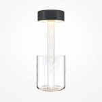 Lampa designerska Al Collaboration zwraca na siebie uwagę przede wszystkim za sprawą podwójnej podstawy, która nie tylko prezentuje się nad wyraz stylowo, ale również posłużyć może jako naczynie na dekoracje. Unikatowa lampa stołowa Al Collaboration na szklanej podstawie wyposażona jest również w metalowy klosz w czarnym kolorze o minimalistycznej formie płaskiego walca.