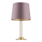 Nowoczesna lampa stołowa Hampton wyposażona jest w brudnoróżowy abażur satynowy ze złotym wnętrzem oraz w podstawę wykonaną z transparentnego szkła i mosiądzu. Model doskonale sprawdza się w roli lampki nocnej, przy której możesz poczytać, ale i która po prostu stworzy we wnętrzu klimat. Unikatowa lampa stołowa Hampton z tkaninowym abażurem doskonale pasuje nie tylko do aranżacji nowoczesnych, ale także klasycznych, glamour i eklektycznych. Polecana lampa do sypialni przeznaczona jest do jednej żarówki, również w wariancie z możliwością ściemniania światła.