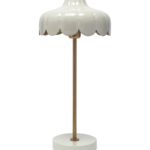 Unikatowa lampa stołowa Wells w beżowym kolorze ze sklepu online Ryssa ma wysokość 50 cm i wyposażona jest w wyjątkowo ozdobny klosz z imitacją falbanki. Cały model wykonany został z metalu, który zapewnia oprawie trwałość i stabilność. Lampa do sypialni Wells przystosowana jest do jednej żarówki LED z gwintem E27. Pasują do niej zarówno standardowe, jak i ściemnialne źródła światła. Te drugie pozwolą Ci w każdej chwili wnieść do pomieszczenia klimatyczną atmosferę – wystarczy, że przyciemnisz nieco oświetlenie.