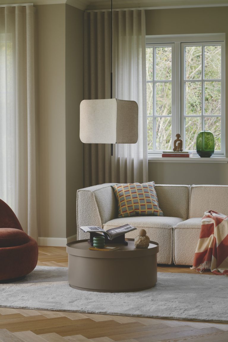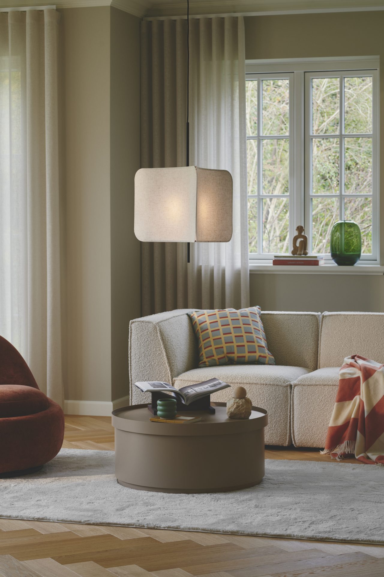 Klosz o średnicy 50 cm z łatwością pozwoli Ci oświetlić nawet większe wnętrze. Dodatkowo unikatowa lampa wisząca Tinto w delikatnym kolorze umożliwia zastosowanie żarówki ściemnialnej. Dzięki niej w każdym momencie możesz przyciemnić światło, a tym samym stworzyć przytulną atmosferę. Polecana lampa wisząca tkaninowa wyjątkowo dobrze komponuje się z meblami i tekstyliami wykonanymi z naturalnych materiałów – na przykład z drewna lub bawełny. Oferowana lampa do salonu doskonale prezentuje się zamontowana nad środkową częścią pomieszczenia, ale także jako dodatkowe źródło światła w większej przestrzeni.