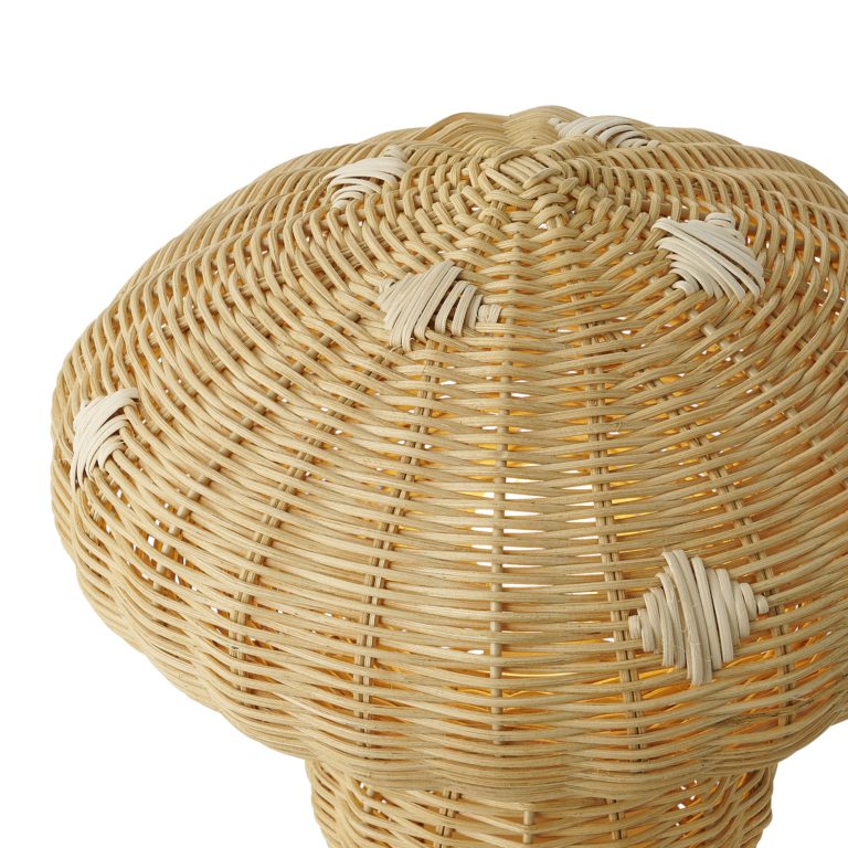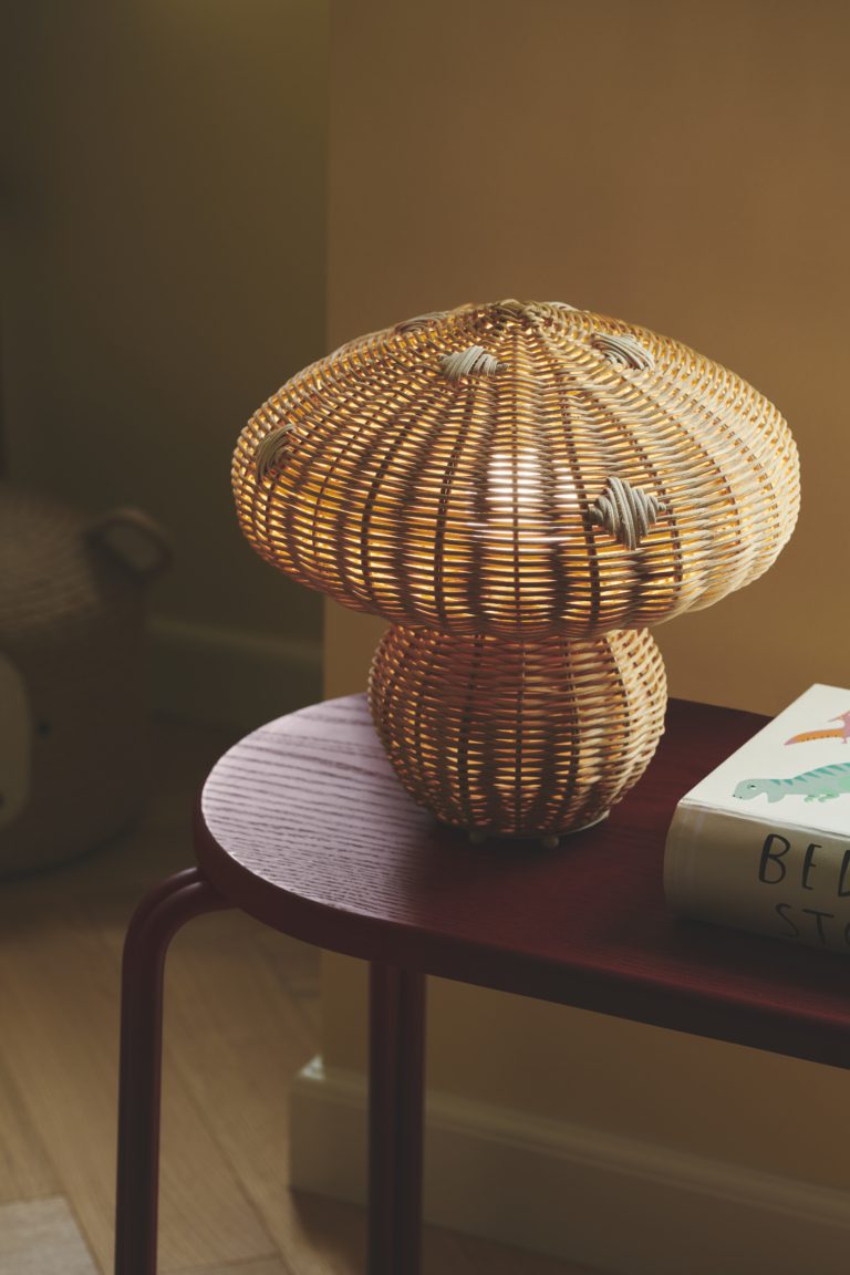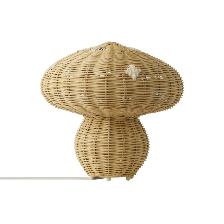 Unikatowa lampka dziecięca Allie Nature wyposażona jest w pleciony rattanowy klosz, który kształtem przypomina grzybka. Na kapeluszu widoczne są jaśniejsze sploty, które imitują białe kropki muchomora. Lampka nocna dla dzieci Allie Nature w całości utrzymana jest w naturalnej beżowej kolorystyce, która dodatkowo ociepla wizualnie wnętrze, aby Twoja pociecha zawsze czuła się bezpiecznie! Do oferowanej lampy beżowej warto dobrać również inne dodatki w stonowanych odcieniach.