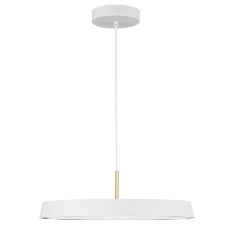 Model jest także uniwersalny pod względem kolorystyki. Lampa wisząca LED Coruna utrzymana jest w bieli i urozmaicona subtelnym złotym akcentem.