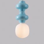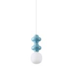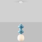 Urocza lampa wisząca Vilrosa B w niebieskim kolorze składa się z metalowej białej podsufitki, długiego przewodu zasilającego oraz designerskiego klosza ze szkła i ceramiki. Dodatkowo oferowana lampa w nowoczesnym stylu przystosowana jest do żarówek LED – energooszczędnych i długowiecznych.