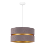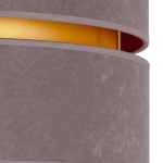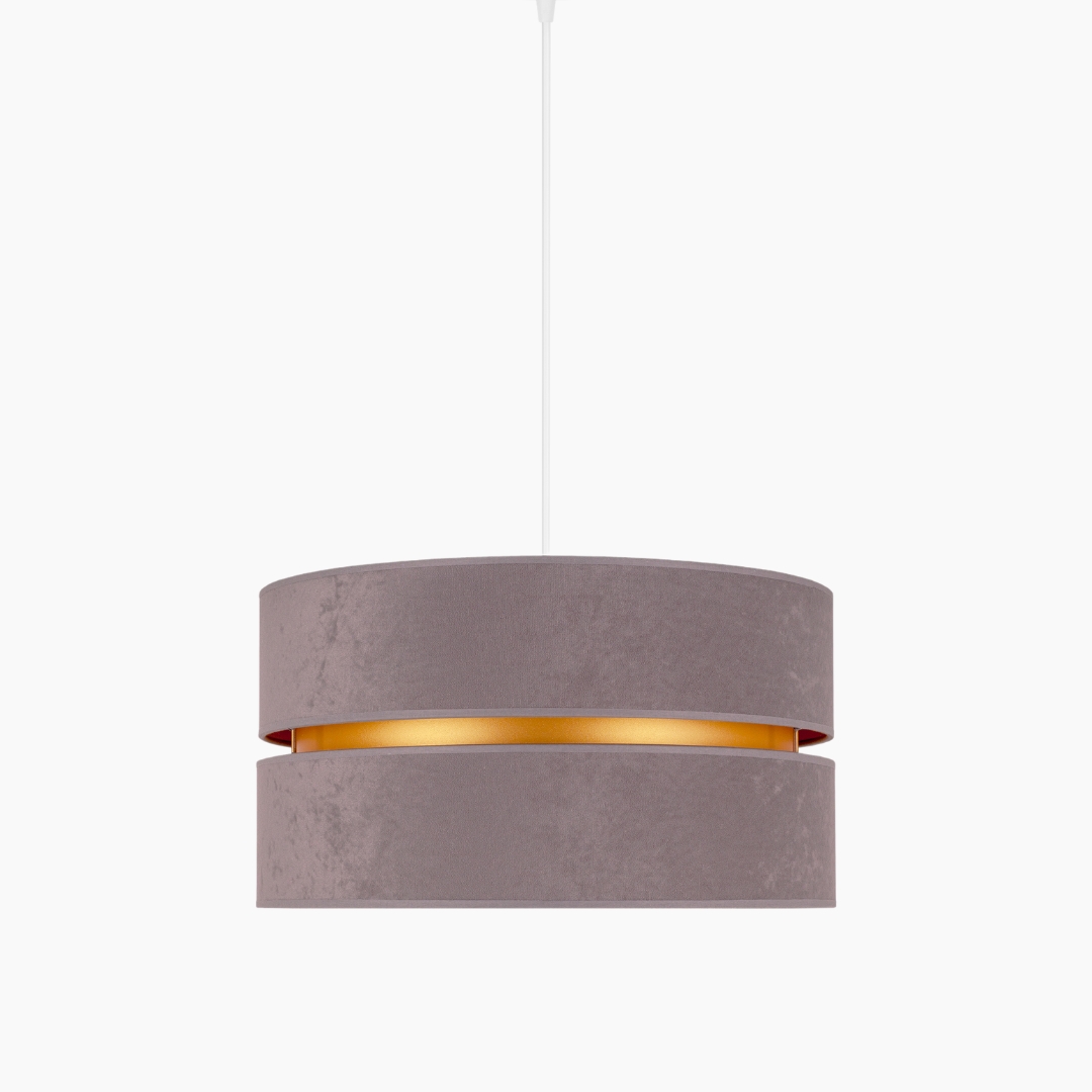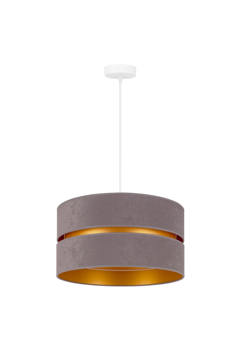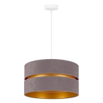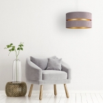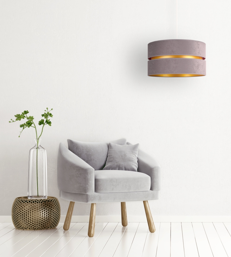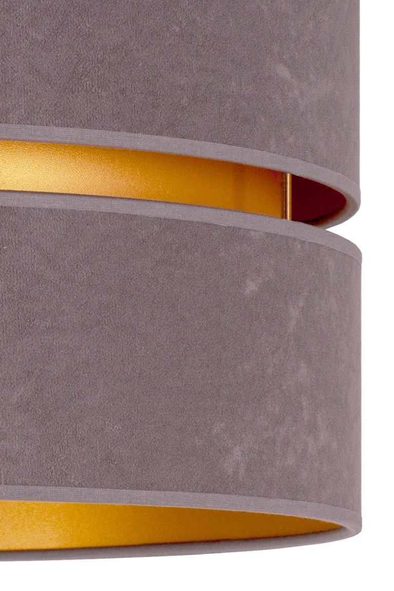 Lampa wisząca Duo, której abażur został wykonany z weluru w kolorze szarym to naprawdę wyjątkowy model oświetlenia. Dzięki złotej folii, która pokrywa jego wnętrze nadaje wnętrzu przytulności i ciepła. Nie bez powodu kolor złoty jest tak bardzo pożądanym elementem w dekoracji wnętrz. Od tysiącleci kojarzy się z przepychem, bogactwem i wszelkimi dobrami. W wielu domach można spotkać się z dodatkami i elementami wykończeniowymi w tym kolorze. Jako dodatek podkreśla styl, klasę i elegancję przedmiotów. Lampy wiszące, które zostały nim wykończone, cieszą się ogromną popularnością wśród klientów. To samo tyczy się modeli wiszących. To właśnie one wiodą prym w większości wnętrz. Wśród nich można spotkać się z najróżniejszymi wersjami. Od tych z klasycznymi abażurami przez te z nowoczesnym wzornictwem, aż po modele geometryczne.