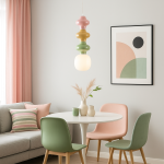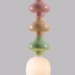 Wielokolorowa lampa wisząca Vilrosa C na metalowym stelażu wyposażona jest w designerski klosz w czterech pastelowych kolorach: różowym, beżowym, zielonym i białym. Kolorystyka oferowanej lampy z metalowym stelażem, w połączeniu z nietypową formą, wnosi do wnętrza świeżość i przyciąga wzrok. To propozycja, która stać się może jednym z bardziej dekoracyjnych elementów Twojej aranżacji!