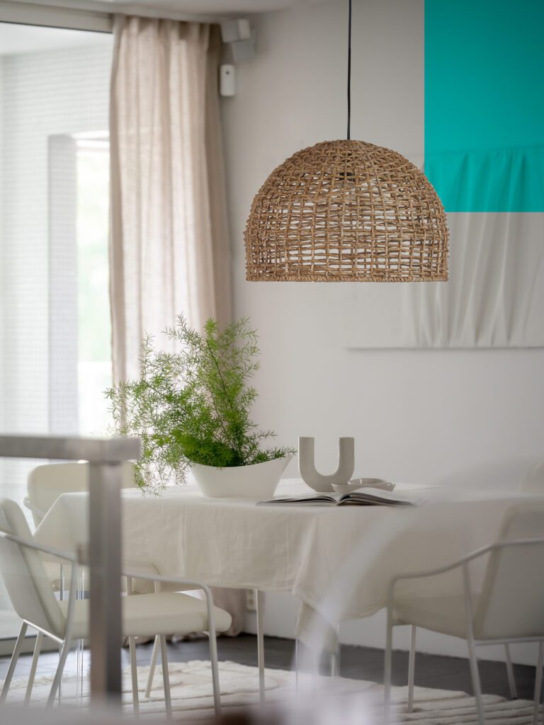 Prostota w naturalnej odsłonie – wiklinowa lampa wisząca Cebu przyciąga uwagę, zdobi wnętrze, ale wyróżnia się również lekkością formy. Model doskonale nadaje się do roli lampy do wnętrz boho i rustykalnych, zapewniając wyjątkowo przytulny klimat.