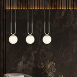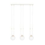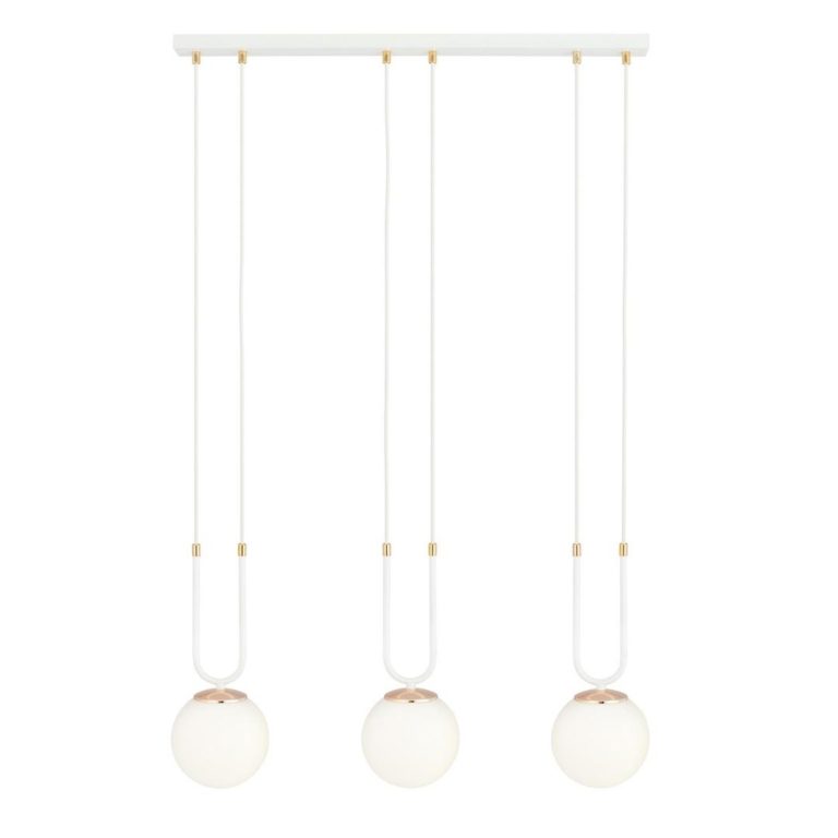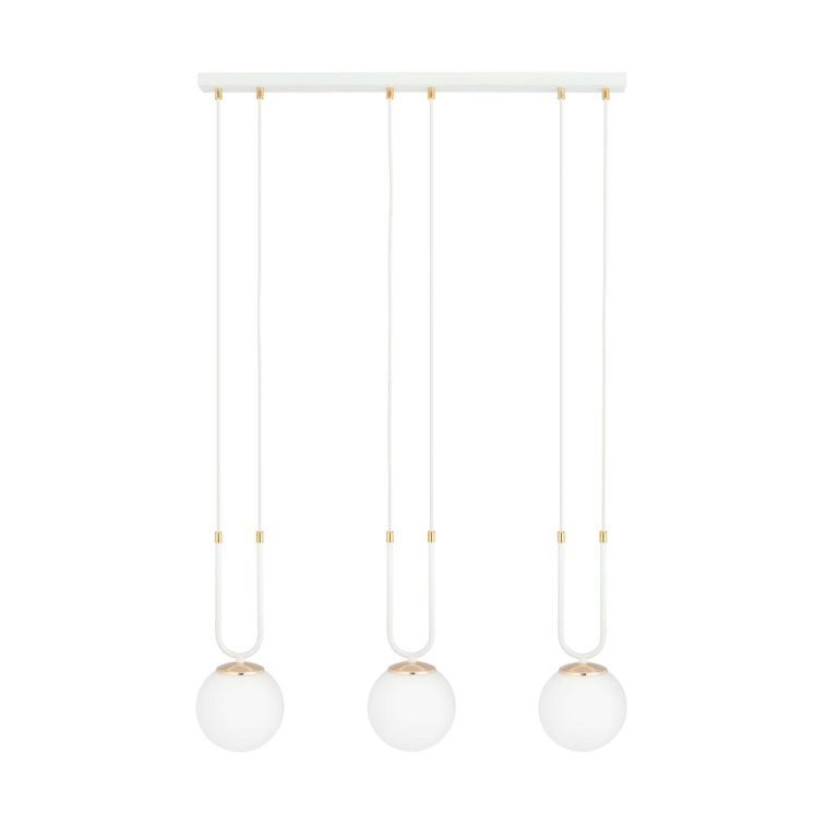 Wisząca lampa z trzema kulistymi kloszami Marga 3 niemal w całości jest biała, zdobią ją jedynie złote detale. Kolorystyka ta prezentuje się niezwykle elegancko i świetnie pasuje do nowoczesnych aranżacji z nutką stylu glamour. Biała lampa wisząca dodaje wnętrzu lekkości i rozjaśnia je nawet w ciągu dnia. Ten rodzaj oświetlenia jest także uniwersalny, ponieważ bardzo dobrze współgra z każdą kolorystyką pokoju.