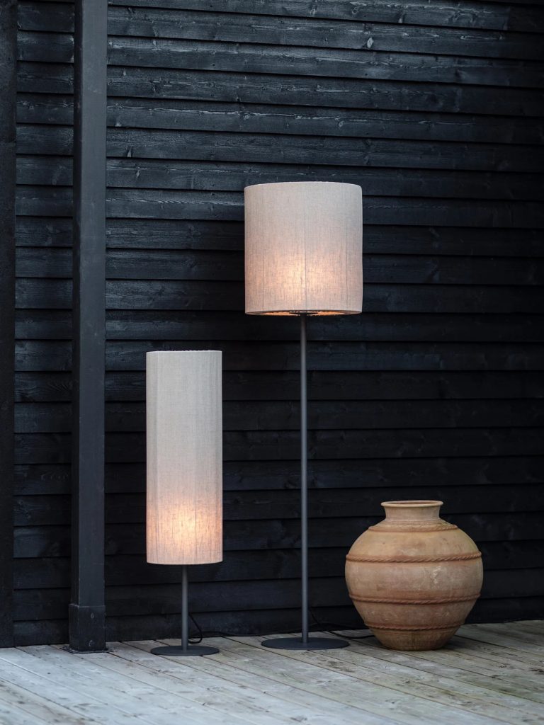 Zewnętrzna lampa stojąca Agnar C z beżowym abażurem i czarnym stelażem, dzięki minimalistycznej formie i klasycznej kolorystyce, prezentuje się subtelnie i elegancko. Model wyposażony jest w klosz w kształcie tuby oraz prostą, ale stabilną podstawę. Ze względu na swoją budowę, to znakomita lampa na taras, czy balkon, która umili Ci relaks każdego wieczoru. Lampa zewnętrzna Agnar C pięknie prezentuje się w otoczeniu metalowych, ale i rattanowych mebli oraz dodatków wykonanych z miękkich tkanin – zarówno o stonowanej, jak i bardziej wyrazistej kolorystyce.
