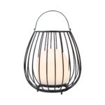 Oferowana lampa do ogrodu wyposażona jest w biały zaokrąglony klosz wykonany z tworzywa sztucznego w metalowej czarnej oprawie o ażurowej strukturze. Całość ma wysokość 38,4 cm oraz szerokość i głębokość 28 cm. Optymalne rozmiary zewnętrznej lampy stołowej Jim w czarnym kolorze pozwolą Ci postawić ją praktycznie wszędzie – nawet na niewielkim balkonie! Model wyposażony jest również w przewód o długości 100 cm.