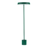 Zielona lampa podłogowa Coruna na metalowej podstawie wyposażona jest w akrylowy, płaski i okrągły klosz, który skutecznie rozprasza światło, a jednocześnie tworzy we wnętrzu przytulną atmosferę. Model posiada również wbudowane oświetlenie LED o przyjemnej w odbiorze ciepłej barwie światła.