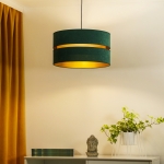 Jako lampa wisząca idealnie sprawdzi się w salonie, jadalni i sypialni. Równie dobrze będzie wyglądała w przedpokoju czy kuchni. Lampa świetnie podkreśli wnętrza zaaranżowane w stylu glamour. Wpasuje się także w pomieszczenia nowoczesne i klasyczne. Abażur został wykonany z najwyższej jakości materiału zamszowego i złotej folii. Choć lampa wisząca z kolekcji Duo kojarzy się z przepychem, świetnie odnajdzie się także w prostych wnętrzach. Dzięki zaopatrzeniu produktu w możliwość regulacji długości zwisu możesz dopasować ją do pomieszczeń każdej wysokości.