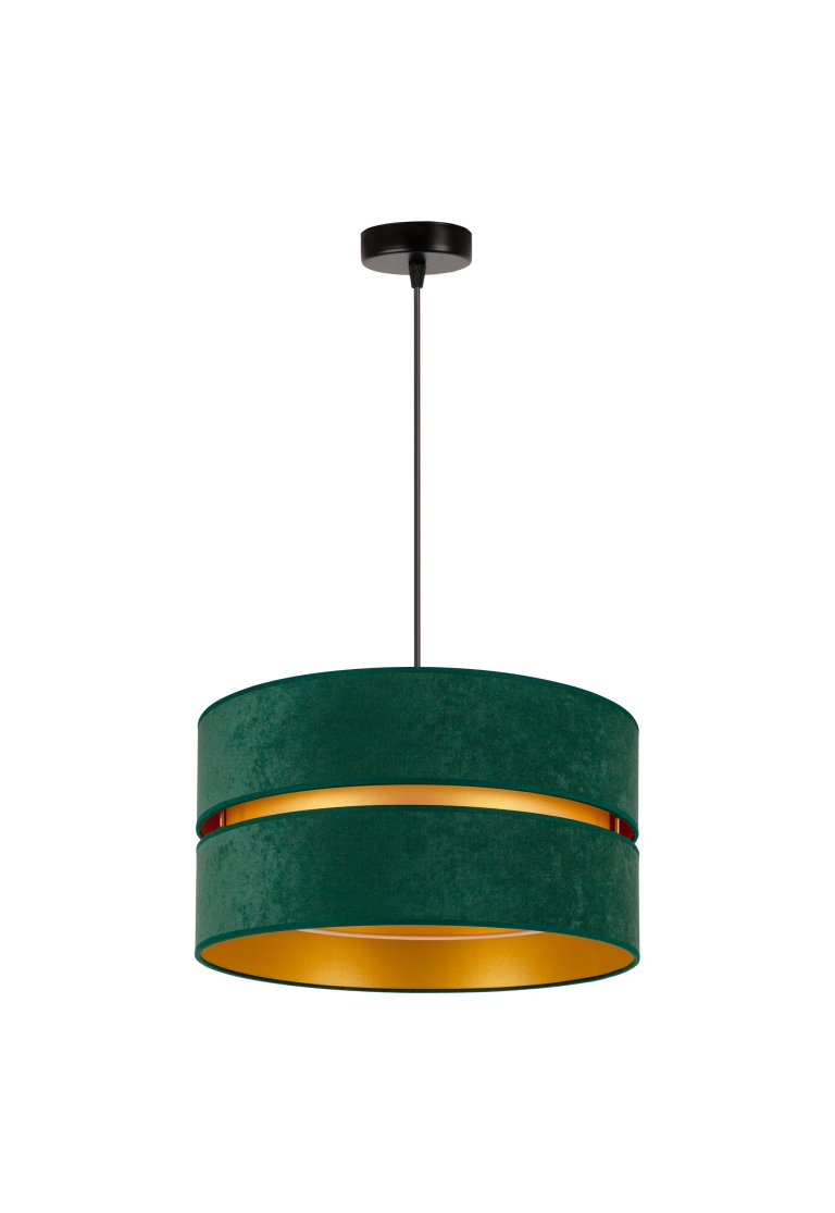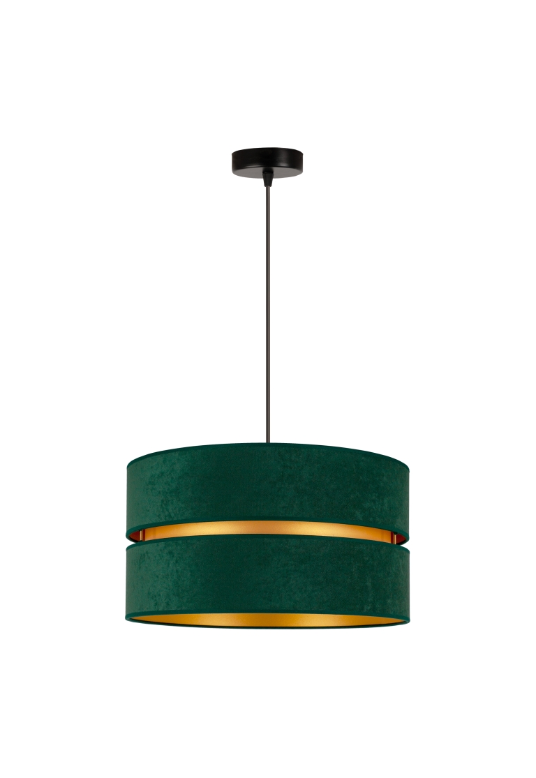Jako lampa wisząca idealnie sprawdzi się w salonie, jadalni i sypialni. Równie dobrze będzie wyglądała w przedpokoju czy kuchni. Lampa świetnie podkreśli wnętrza zaaranżowane w stylu glamour. Wpasuje się także w pomieszczenia nowoczesne i klasyczne. Abażur został wykonany z najwyższej jakości materiału zamszowego i złotej folii. Choć lampa wisząca z kolekcji Duo kojarzy się z przepychem, świetnie odnajdzie się także w prostych wnętrzach. Dzięki zaopatrzeniu produktu w możliwość regulacji długości zwisu możesz dopasować ją do pomieszczeń każdej wysokości.